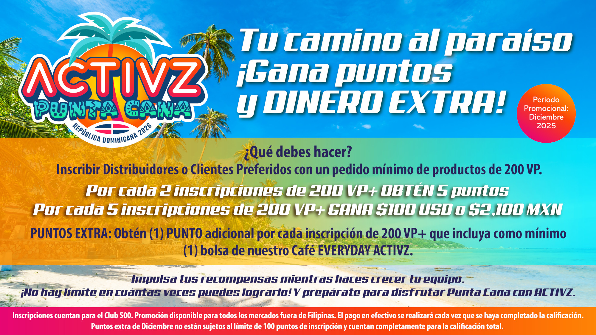 • Debes cumplir con los requisitos de Volumen Personal basados en el Plan de Compensación.